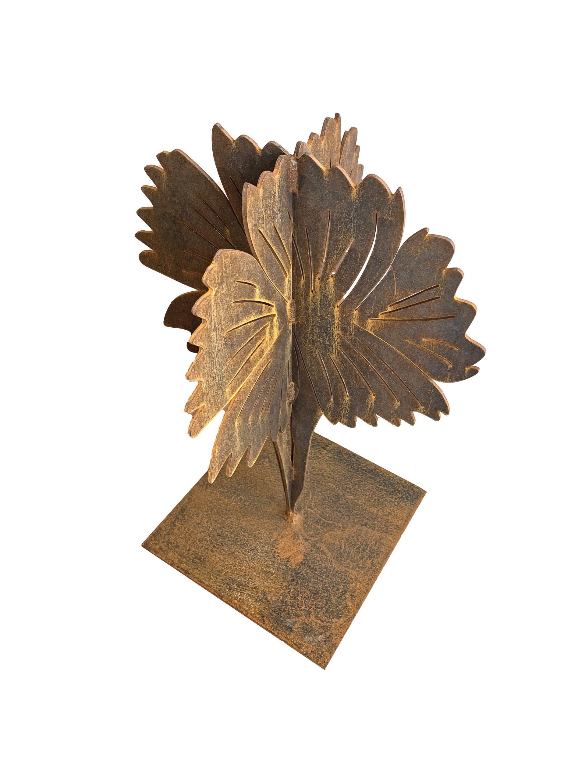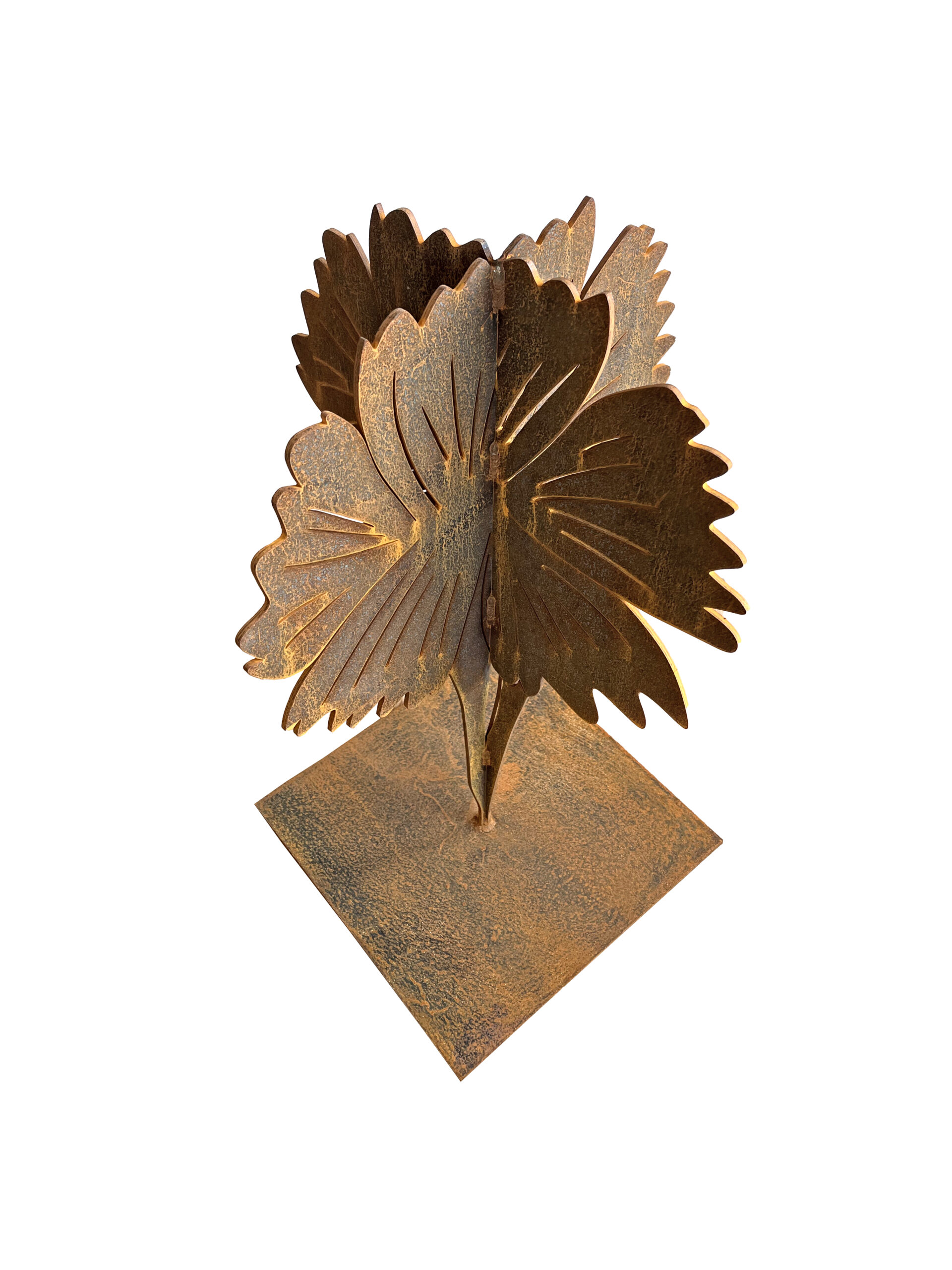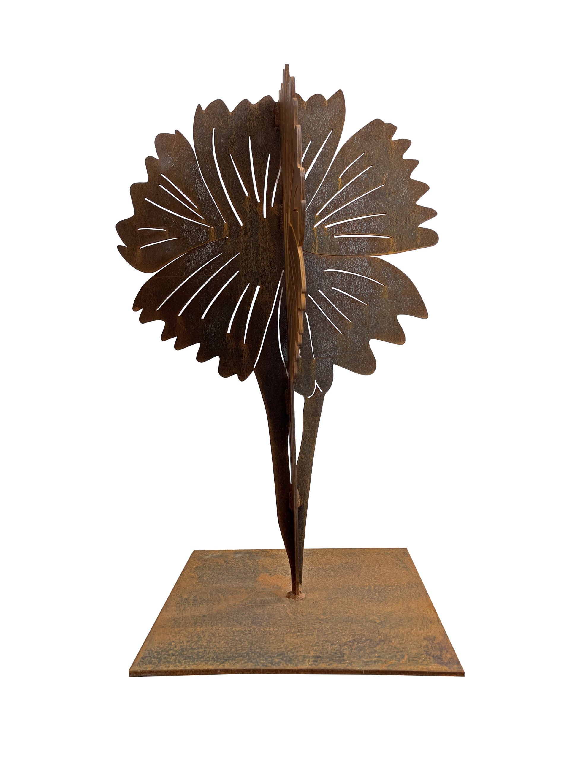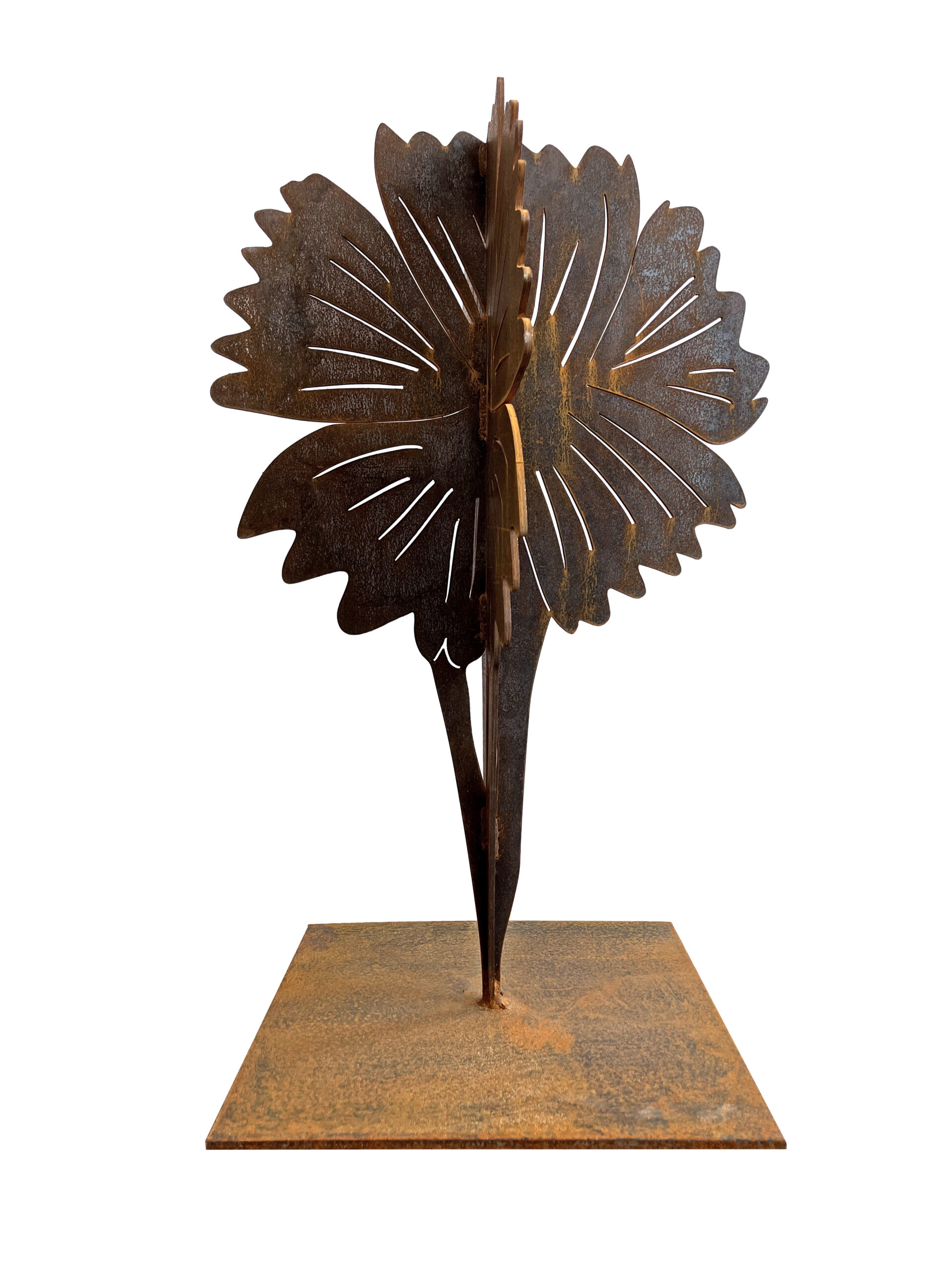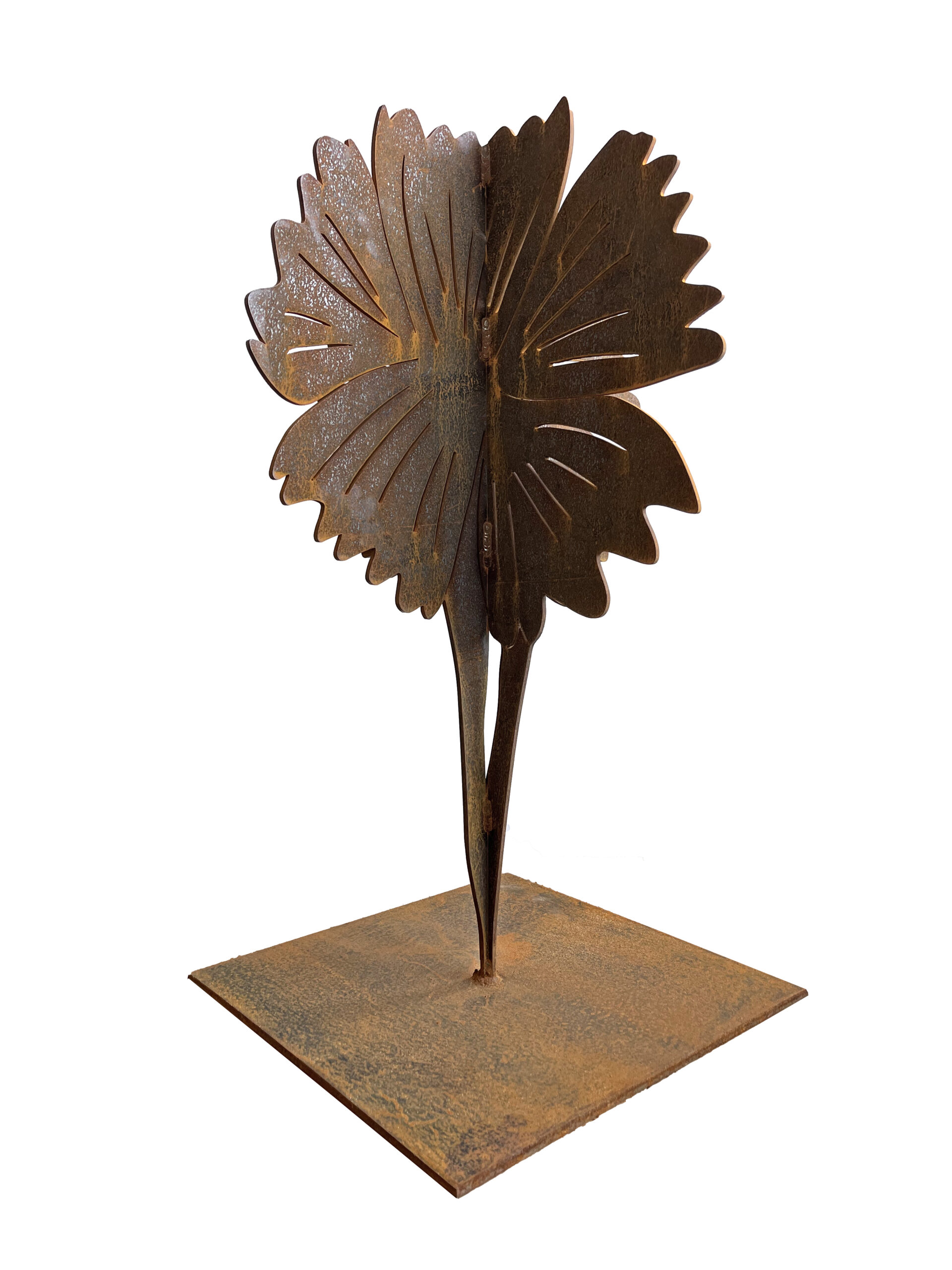 Charlie and Katy are both trained sculptors, and they bring a shared sensibility of form, colour and design to every aspect of their work. The Flower Power series evolved from fluid pencil and charcoal line-drawings, which were then transformed into enigmatic 5mm thick mild steel garden sculptures.