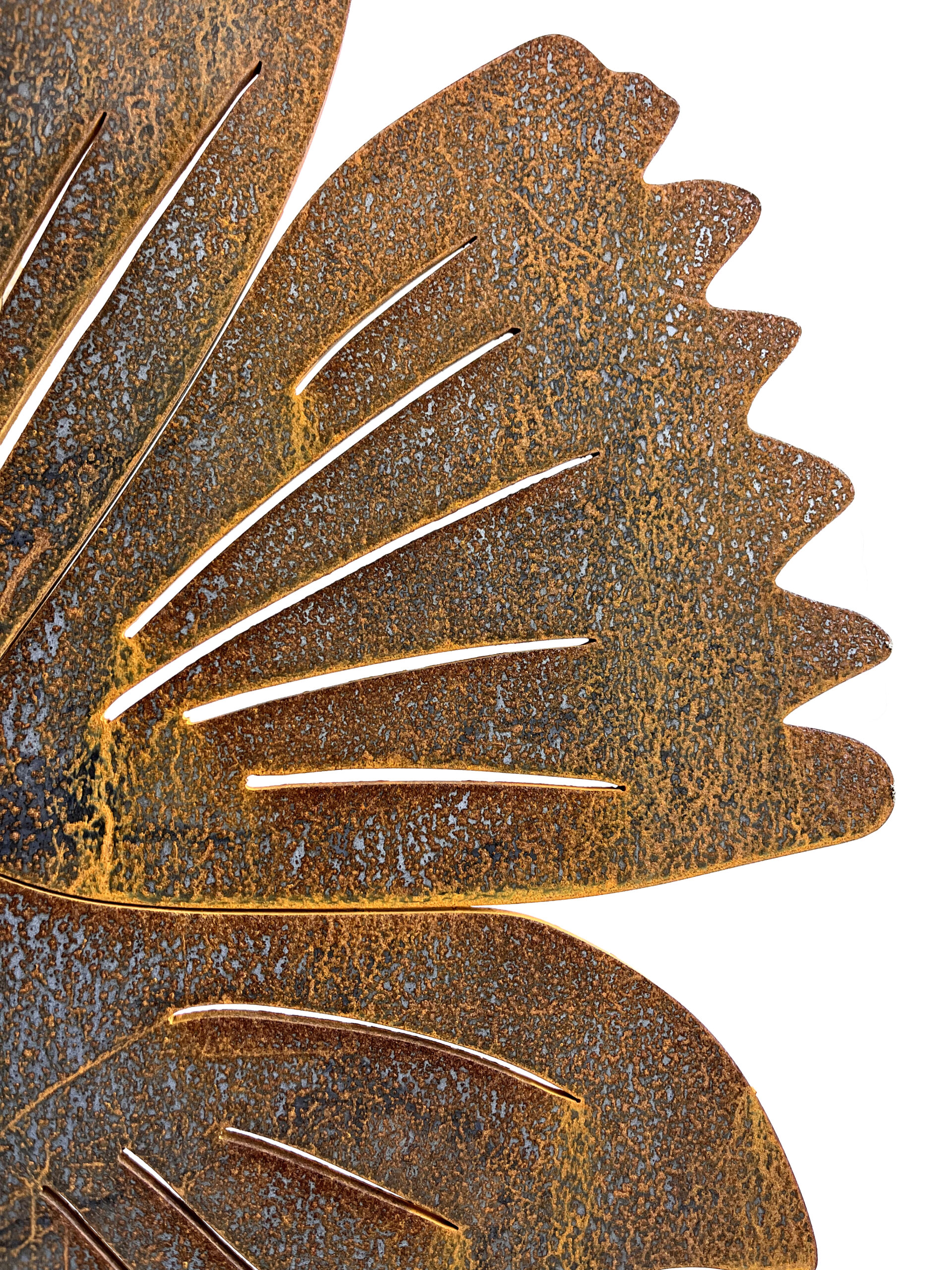 Fan Palm is a hand-drawn steel sculpture by artist duo Charlie and Katy Napier. The piece celebrates form, structure and the generous wonders of the natural world. The work forms one of five pieces from the pair’s new limited edition Flower Power Series, a collection inspired by Italian painter and sculptor Giacomo Balla’s “Futurist Flowers.”